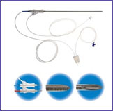 - Flushing lumen extends to needle tip to maximise flow rate through dual lumen needle